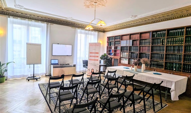 Notre salle convient également aux cours de bien-être, rendez-vous clients importants, interviews et tournages TV grâce à son acoustique optimale et son éclairage naturel. L'environnement prestigieux d'un cabinet d'avocats d'affaires ajoute une touche d'exclusivité à vos événements.